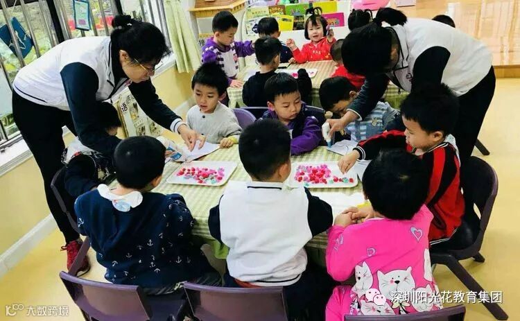 小朋友认认真真的制作着送给妈妈的礼物,每一个步骤都做的特别细心。