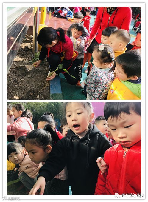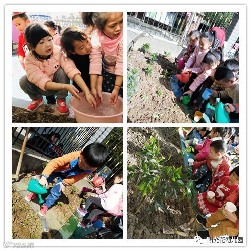 春天到,树发芽,阳光照,我们笑。老师们在给小朋友们介绍了植树节的来历之后,搬起孩子们带来的植物,带领孩子们走出了教室,感受春的气息。