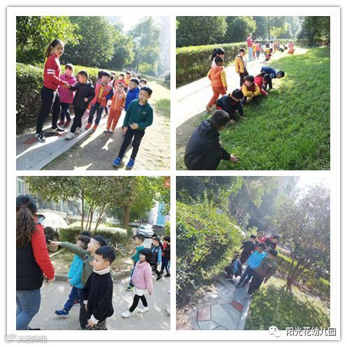 咦,大班的小可爱怎么不见啦?在班级老师们的带领下,大班的宝贝们走出了幼儿园,去探索小区里树的秘密。