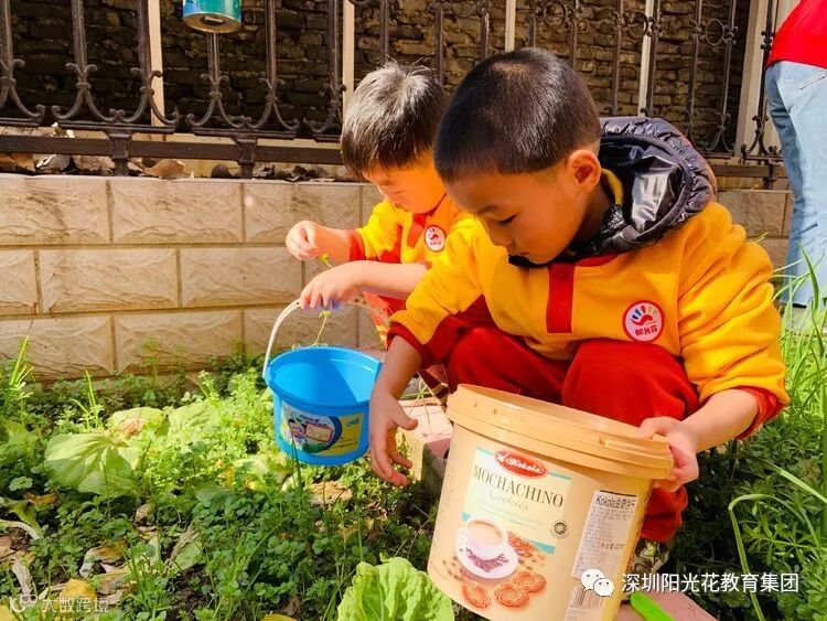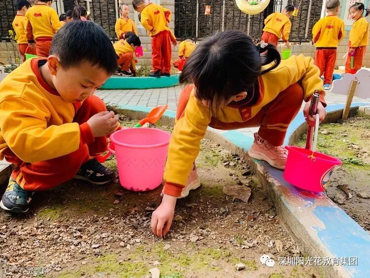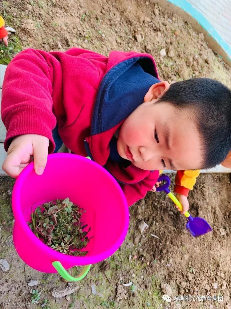 2.中班组带着水桶和铲子,来到了种植区,为种植区的植物松土、拔草!春天到了,种下希望的种子,猜猜,我们都种了什么呢?😊