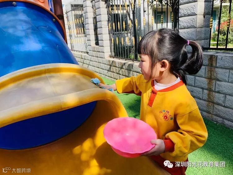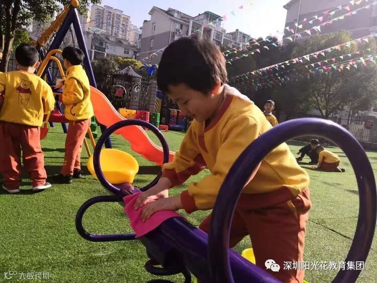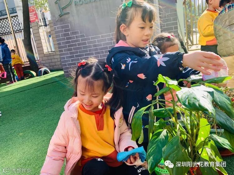 树木花草都是我们的好朋友,我们要爱护它,大班的宝贝们给身边的植物擦去了灰尘,浇上了快乐的因子。