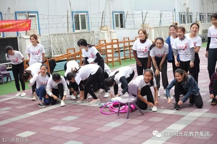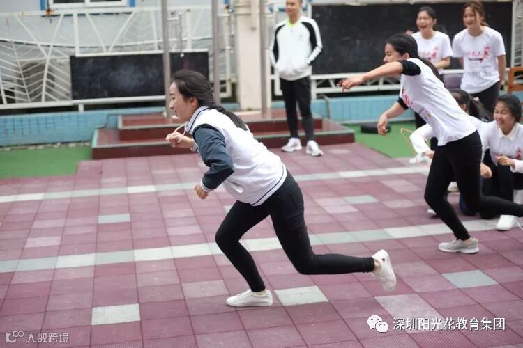 在体能老师的指引下,总共分成七个小组进行比赛,哨声吹响,拓展活动正式开始。