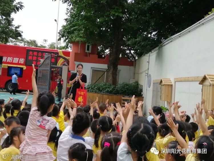 本次活动得到了光明公安分局的大力支持,可亲可爱的警察叔叔们和女子宣传队的姐姐们走进了红苹果幼儿园,跟师幼们一起体验消防演练,并现场给幼儿们具体讲解了消防安全知识。