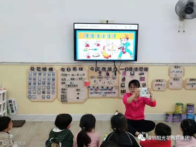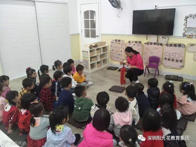 梁园长对小朋友教育了遇到火灾我们应该怎么办?应该不要慌张,听从老师的指挥,然后讲解了灭火器的使用方法
