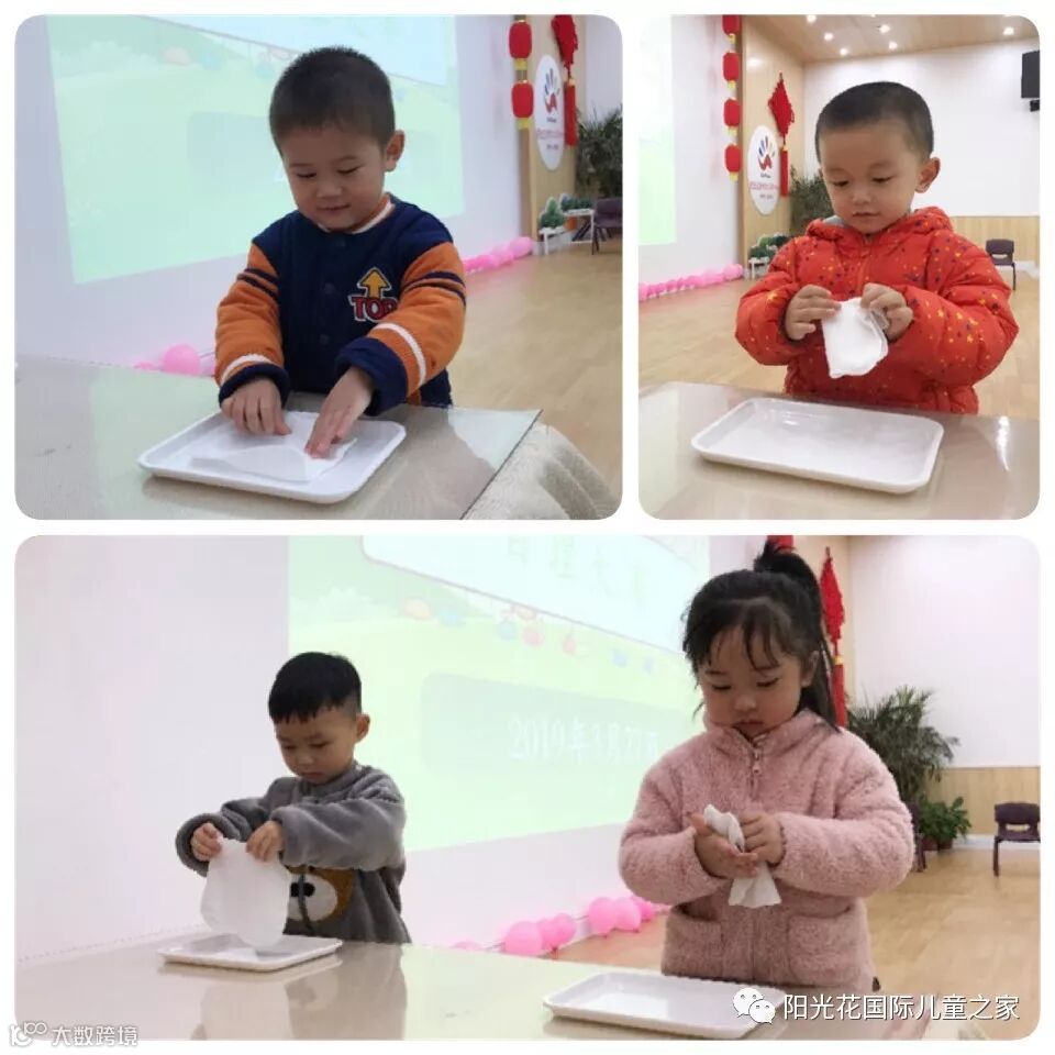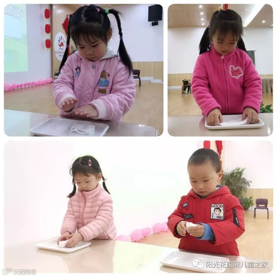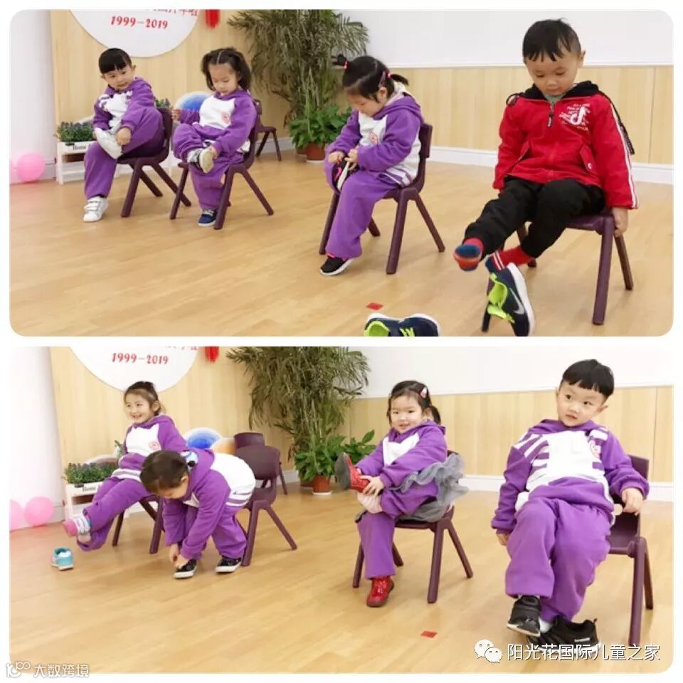 宝贝们从刚入园时的哭哭闹闹,到现在能够在老师的引导下,自己独立完成穿脱鞋子、叠小毛巾,为宝贝们的进步点赞哦!