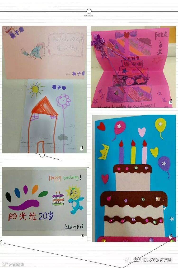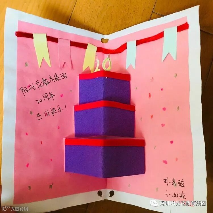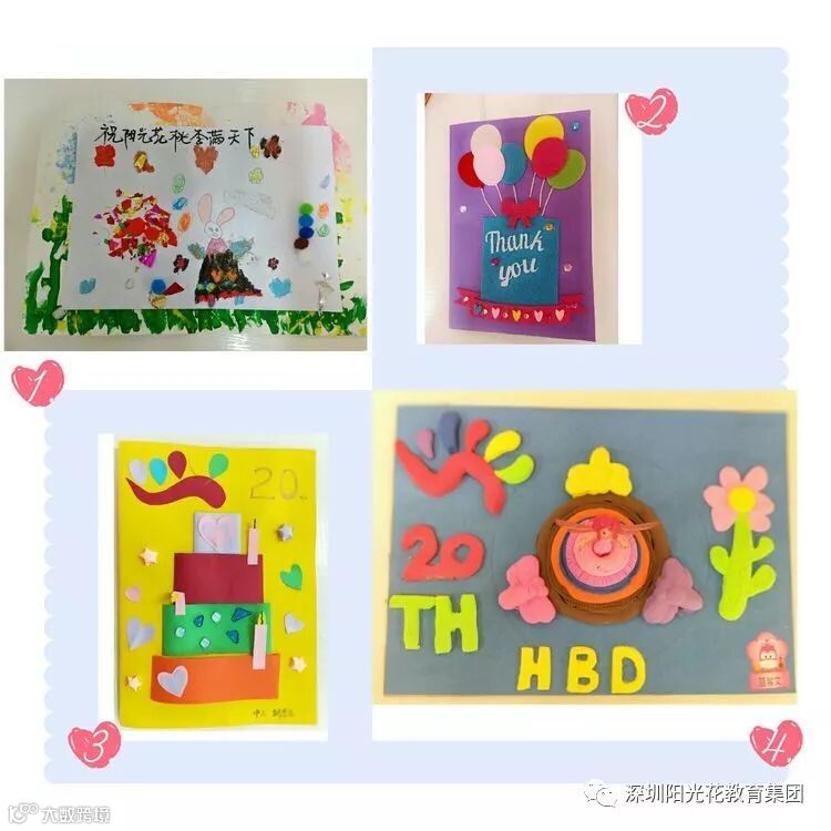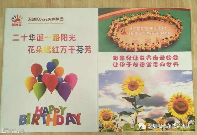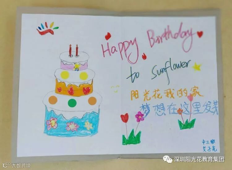 阳光家长与孩童们还制作了生日贺卡,祝愿阳光花教育集团蓬勃发展,越办越好。