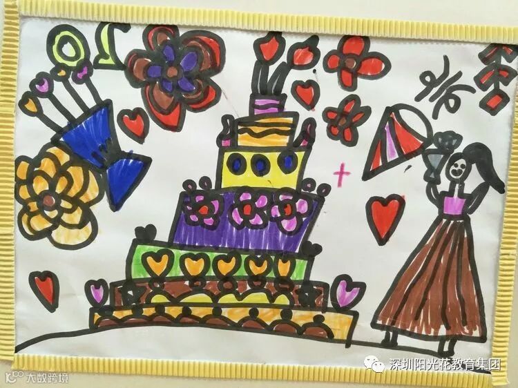 大三班的宝贝们绘画了五彩缤纷的生日蛋糕,漂亮极了。