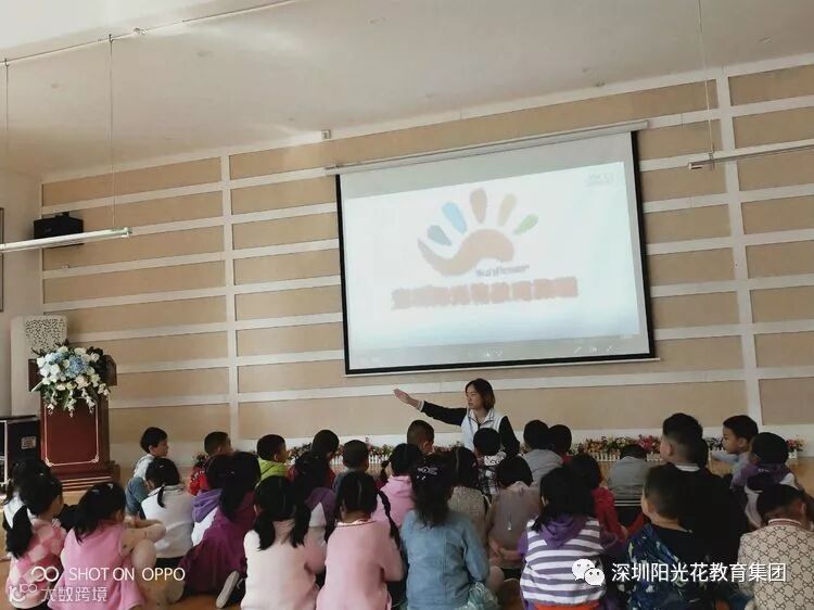 老师与阳光孩童们正在讨论要为阳光花制作“爱的礼物”