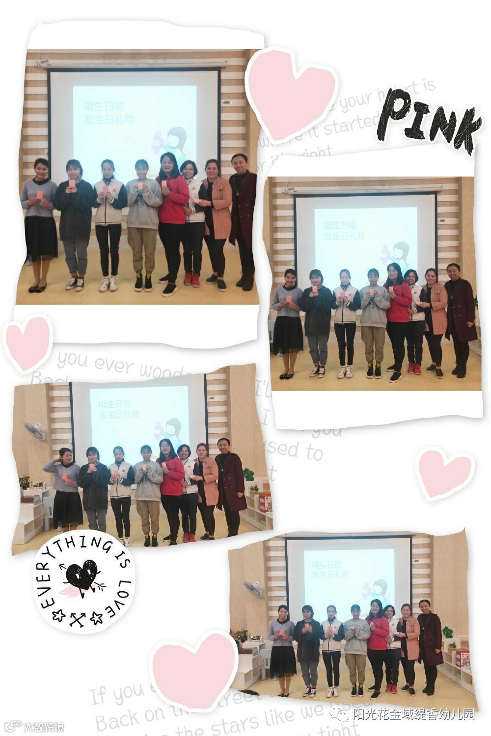 第三环节:2、3月份教师集体生日会。我们乘阳光花20周年之东风,共同庆祝我们2、3月份教师集体生日会,细心的唐主任为过生日的老师制作了祝福视频,孔月琴园长还为每位老师送上了精美的生日礼物 让我们一起祝福老师们生日快乐。