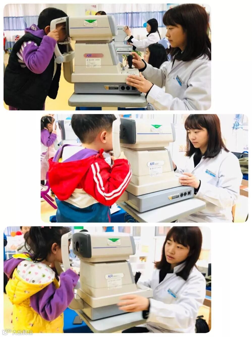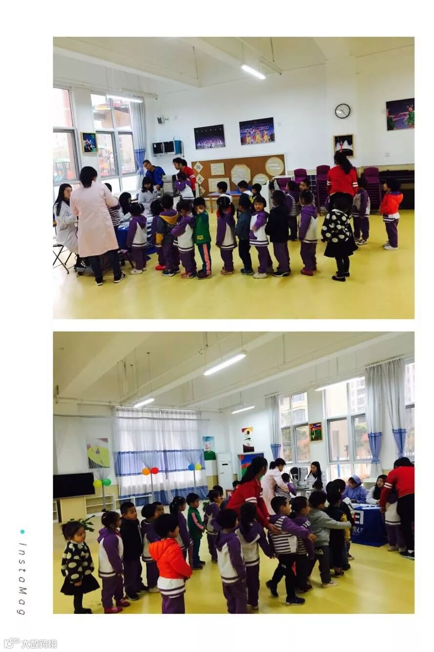 在筛查视力之前宝贝们很有秩序的在排队哦,真的很棒!