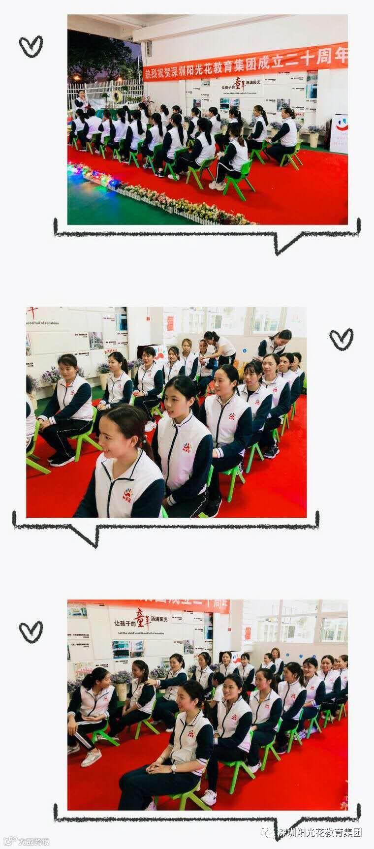 今夜我们齐聚一堂,今夜我们放纵欢唱,今夜我们情系阳光花,二十年,从一家幼儿园发展成四十多家幼儿园,遍布各地,在深圳,在武汉,在河南,在湖南,在江西,在河北,二十年的历程,处处凝聚着阳光花人的智慧与汗水,彰显阳光花情系幼教的梦想,这二十年,我们的爱在这里凝聚,我们的理想在这里放飞,我们的青春热血在这里奔涌,金色未来幼儿园全体教师激情澎湃参与——庆祝阳光花20周岁教师团建活动。
