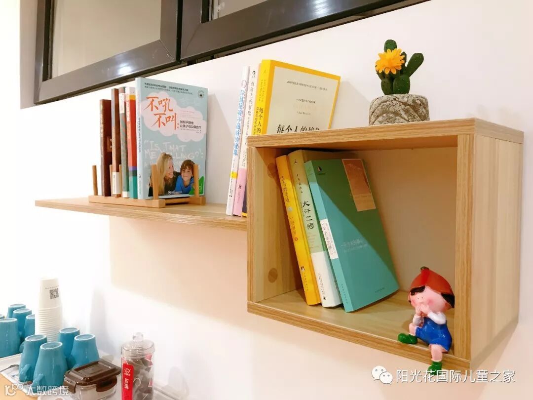 阳光花体能训练馆内设施设备齐全,体能馆外还暖心的为家长朋友准备了阅读区,茶水区,精心挑选的书籍供家长翻阅,让家长享受和孩子共同学习的时光,茶水区提供咖啡、花茶和白开水,供家长选择。