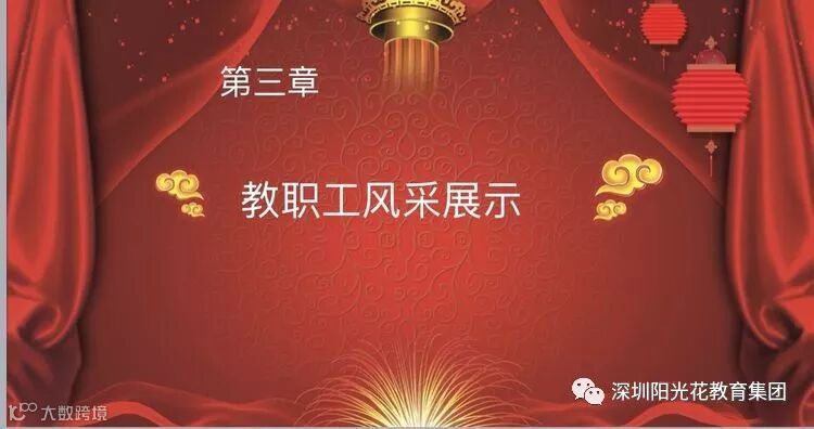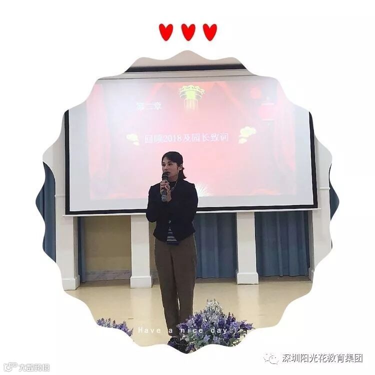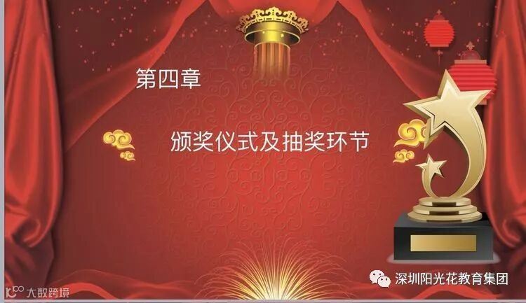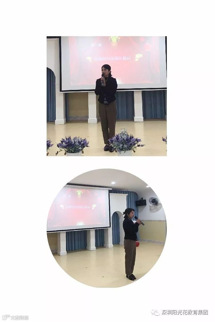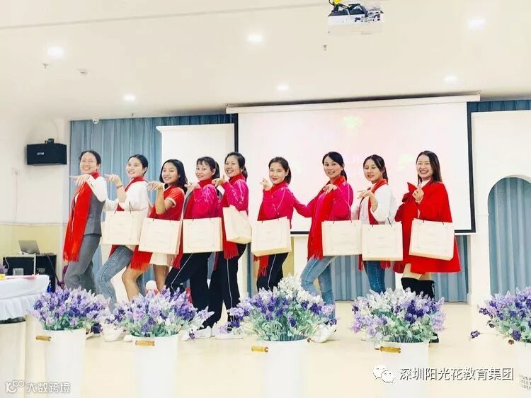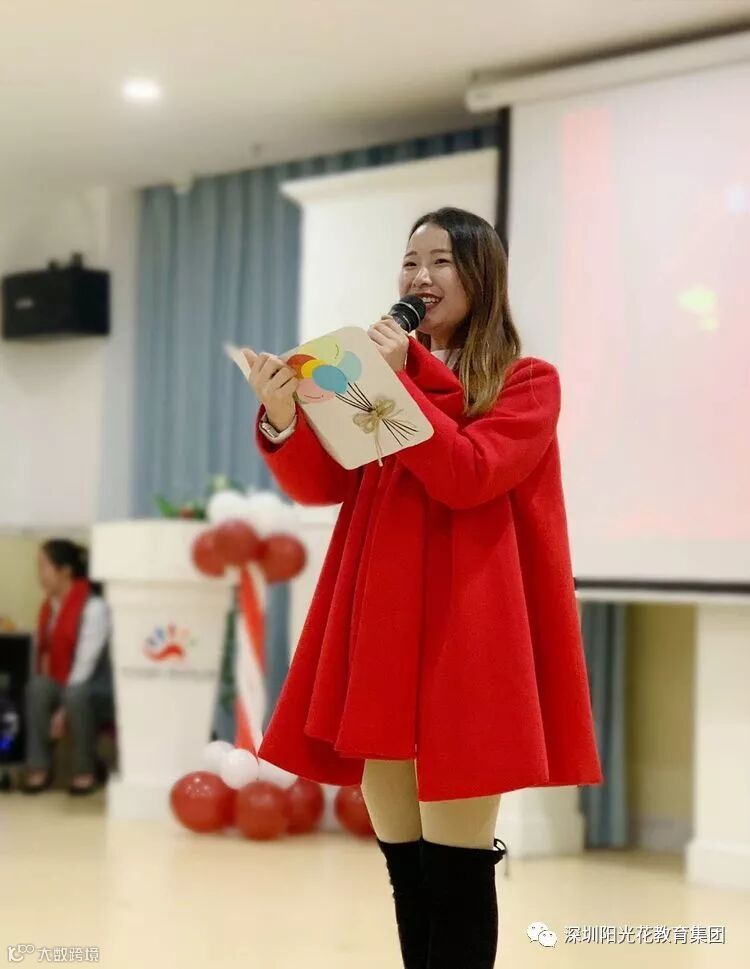 感谢老师们带来的精彩节目,激动人心的时刻就要到来了,今天陈园长将代表阳光花教育集团表彰优秀员工们,感谢大家的辛勤付出及对阳光花中海 九号公馆幼儿园的贡献。