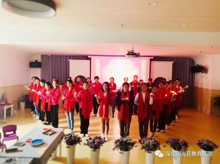 因为阳光花,因为九号公馆幼儿园,“五湖四海”的我们却这么偶然的走到了一起;因为九号公馆幼儿园,让我们相聚在这个温暖的大家庭中,一起工作、生活、拼搏;因为有九号公馆幼儿园,我们有了共同的信念,共同的责任,让我们成为一家人。现在,让我们围成一个大爱心,举起我们手中的蜡烛,一起祈祷祝愿,把爱传递下去。