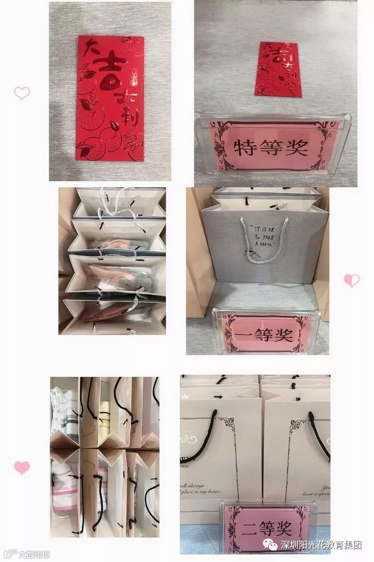 恭喜获奖的老师们,接下来到了我们的抽奖环节,礼轻情意重哈!由小班组、中班组、 大班组、后勤组、行政组轮流上台进行抽奖!奖项有:特等奖,一等奖,二等奖,三等奖,鼓励奖。每个奖项都有礼品,抽完奖的家人们回到位置上,待抽完奖后,我们再颁发相对应的礼品。