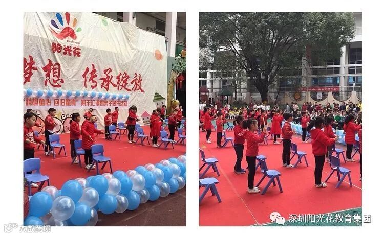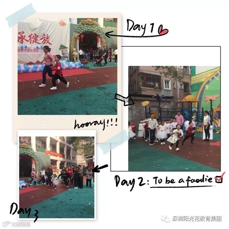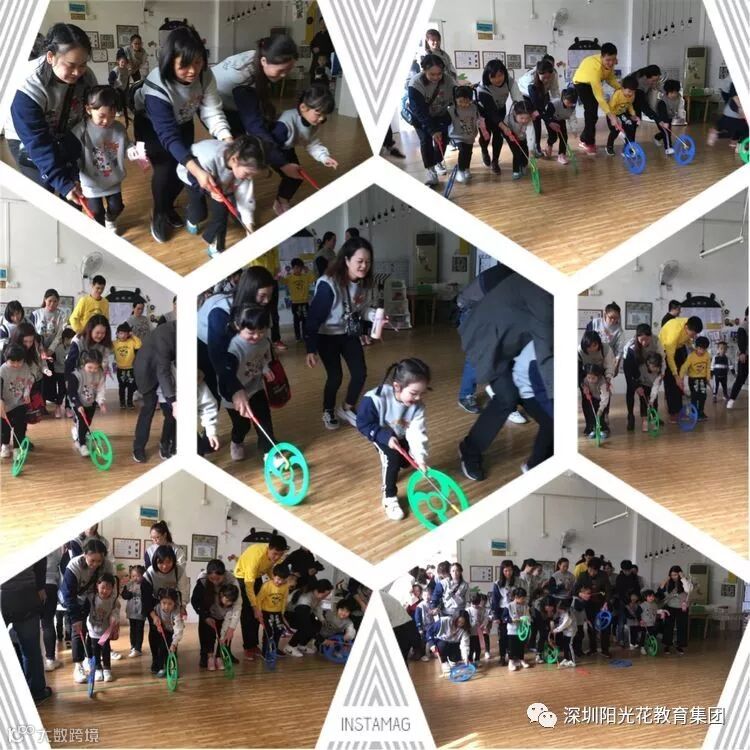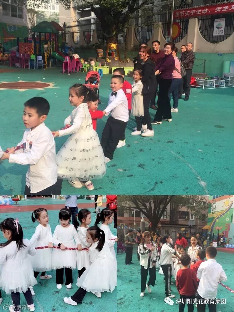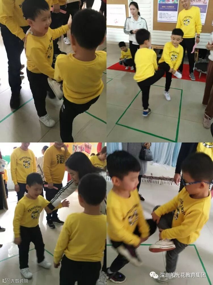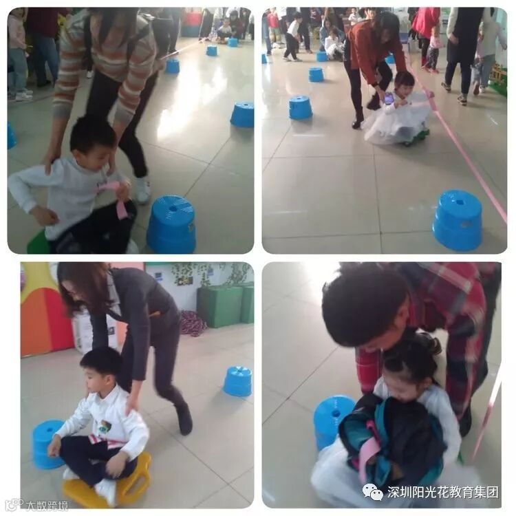 表演汇报结束后分成十一个游戏区;在游戏中亲爱的家长们仿佛也回到了童年的美好时光。