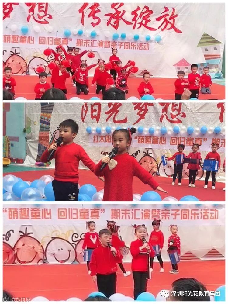 孩子,是民族的希望,更是每个家庭的希望;父母最大的心愿就是孩子能够健康快乐的成长;转眼一个学期的工作又接近了尾声,为了让孩子们提高胆量,增强自信,为了给家长们看到我们孩子成长中的点滴进步,为了让家长体会孩子们成长中的点滴快乐。2019年1月11号红太阳幼儿园大班年级组举办“萌趣童心回归童真”期末汇演暨亲子同乐活动