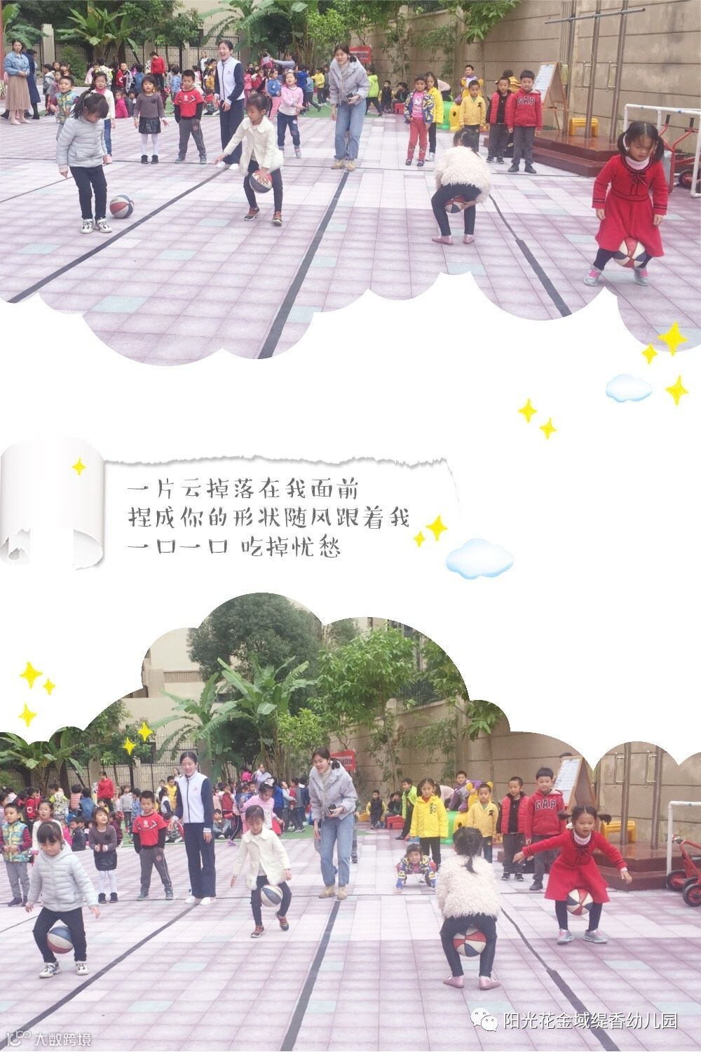 接下来的比赛是花式拍球,孩子们人手一个篮球,成队形散开,随着音乐响起,小朋友按照老师的指示,分别展示了连续左手拍球、右手拍球、双手交替拍球。瞧,孩子们专注拍球的样子多可爱。