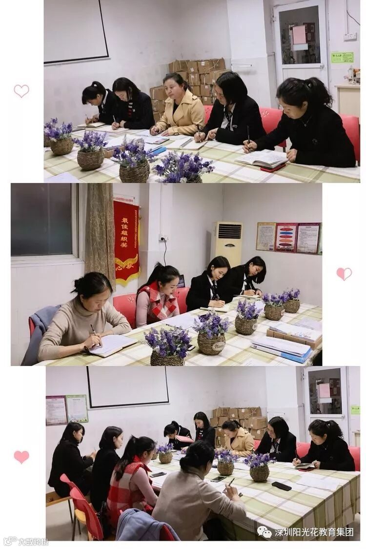 2019年1月9日是个好日子,温馨的冬晚,阳光花深圳总部红太阳幼儿园迎来了2018——2019年第一学期期末工作检查,由阳光花教育集团林丽清总园长、宁琼芳总监、梁丽莎主任、鞠艳园长、李建惠园长莅临我园,对本学期各项常规工作进行检查与指导。