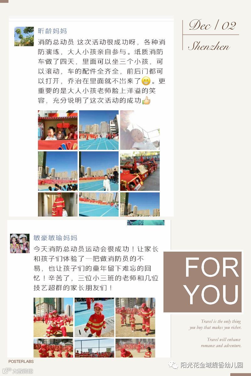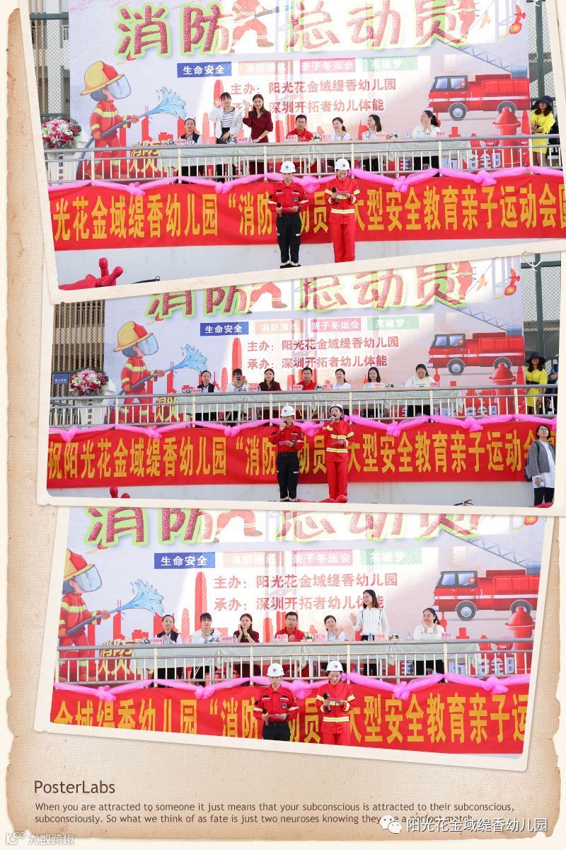 一场活动凝聚了多少人的心血,感谢深圳阳光花教育集团领导的亲临现场与重视;感谢深圳开拓者教育团队;感谢深圳坪山区实验学校提供的场地;感谢家长朋友们的支持与配合;感谢活泼可爱的孩子们;更感谢为此次活动辛勤付出的教职工。有了大家的共同努力才让金域缇香幼儿园“消防总动员”大型安全教育亲子运动会圆满成功,感恩有您!
