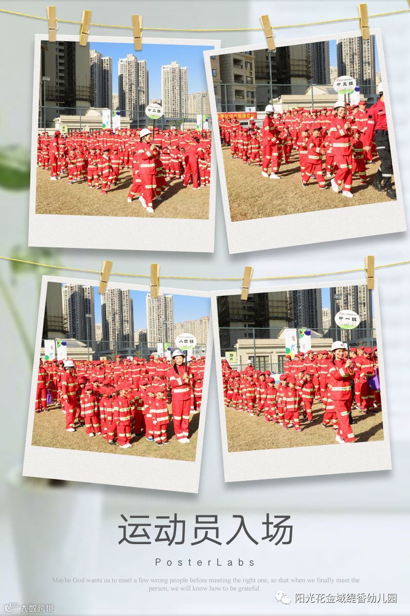 本次亲子运动会分为九个篇章。第一篇章:运动员入场式。今天我们所有的家长和孩子们都变成了勇敢的消防兵,队伍整齐、步伐有力、朝气蓬勃、充满自信的向我们走来了!