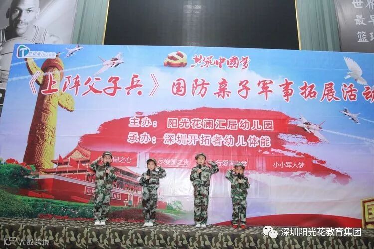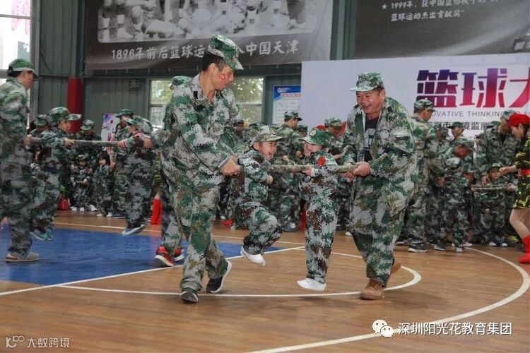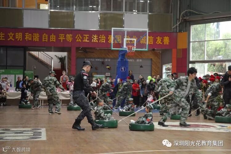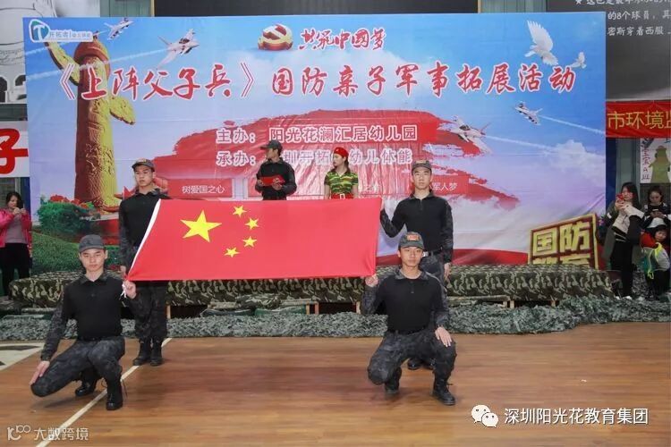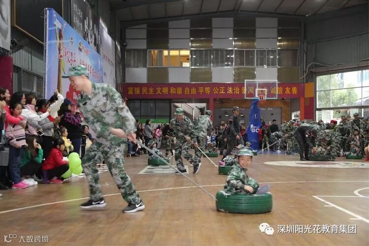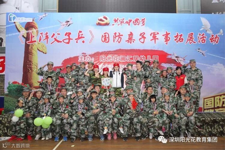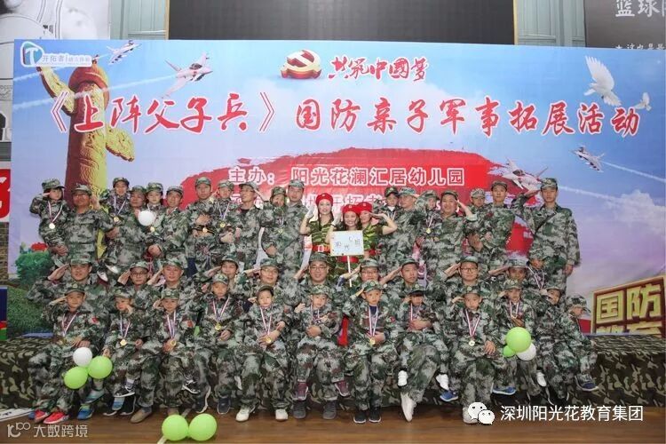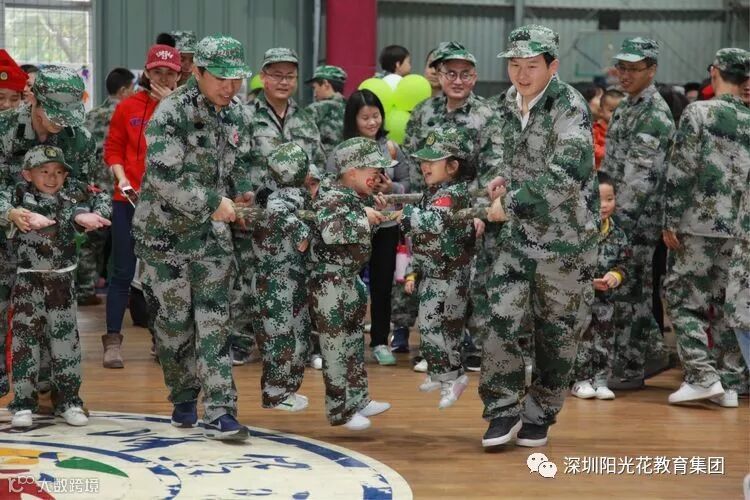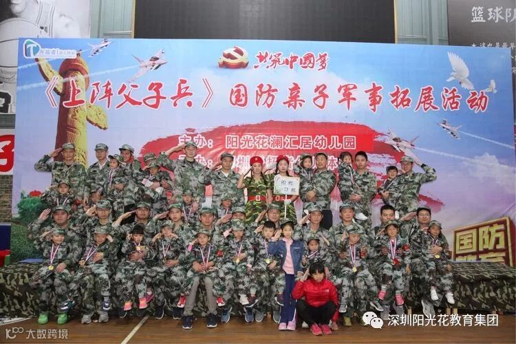 2018年12月16日上午,阳光花澜汇居幼儿园举行了“上阵父子兵”大型国防军事亲子拓展活动。