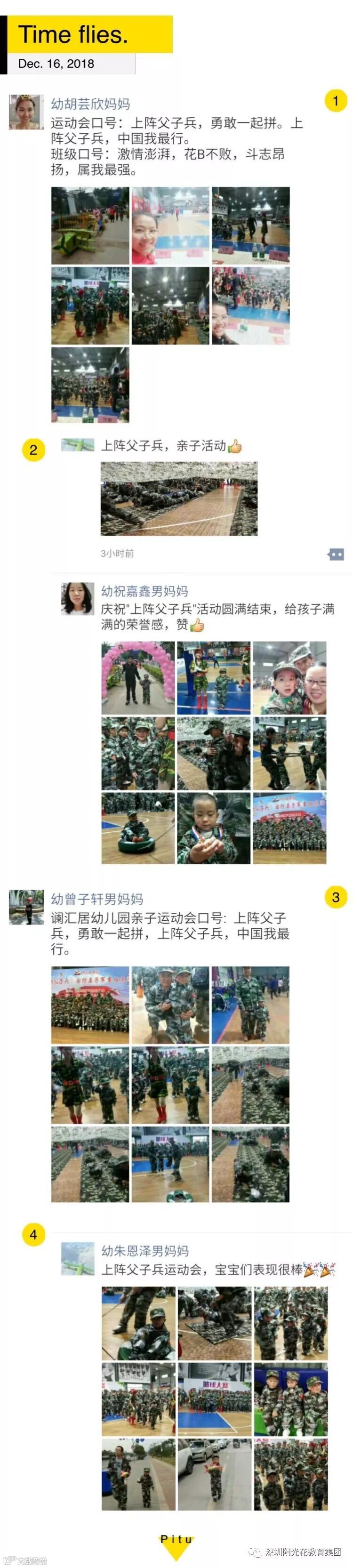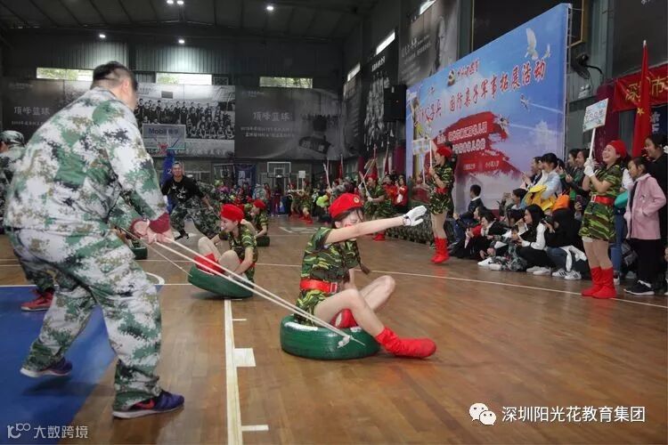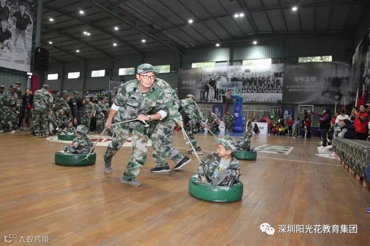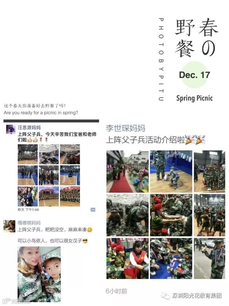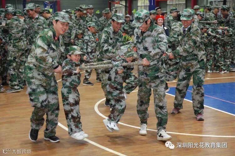 2018年12月16日上午,阳光花澜汇居幼儿园举行了“上阵父子兵”大型国防军事亲子拓展活动。