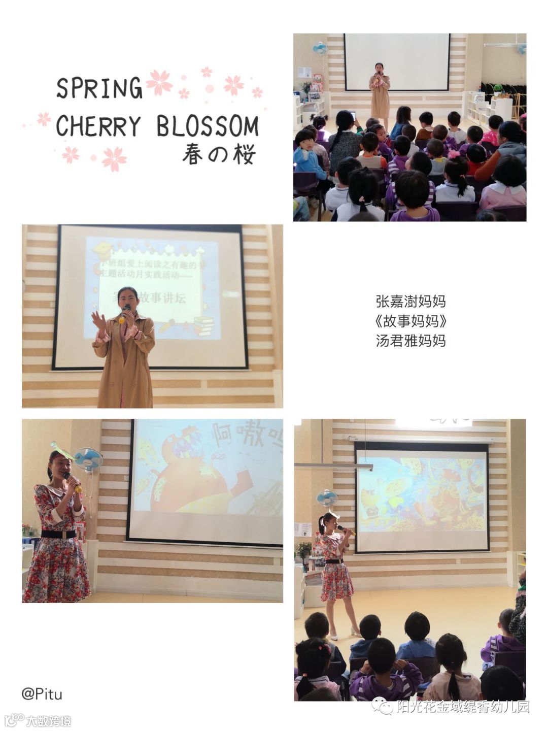 小四班的家长朋友也来了,她们用亲切的笑容,甜美的声音和小朋友们打着招呼,开讲了。