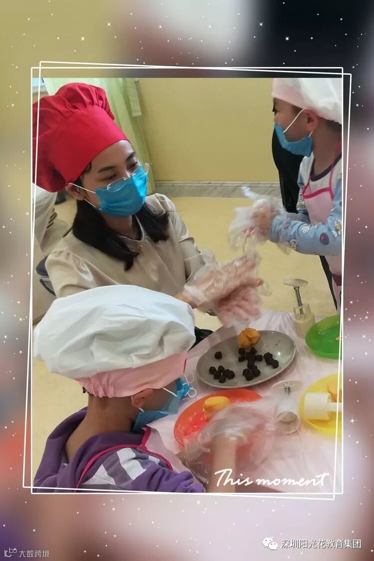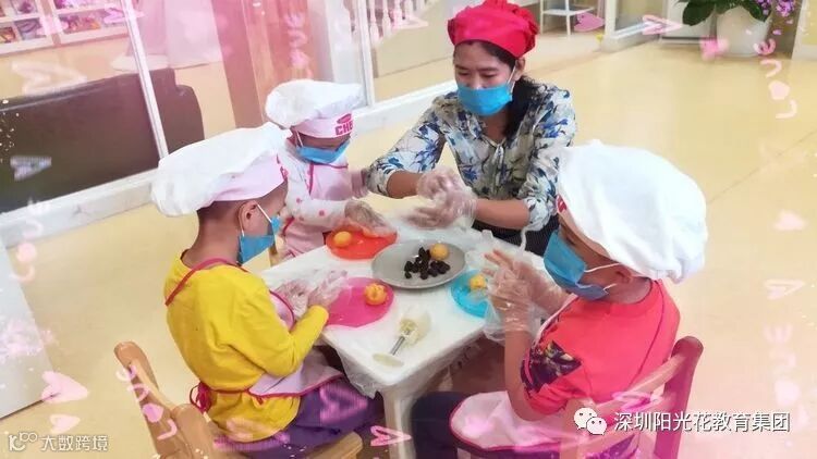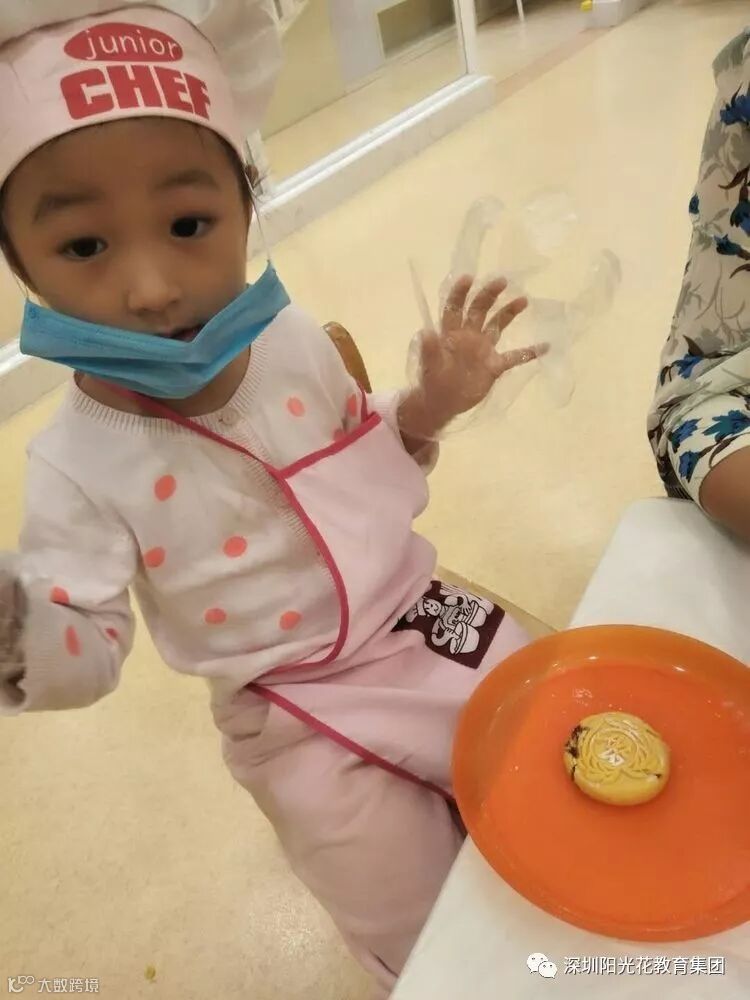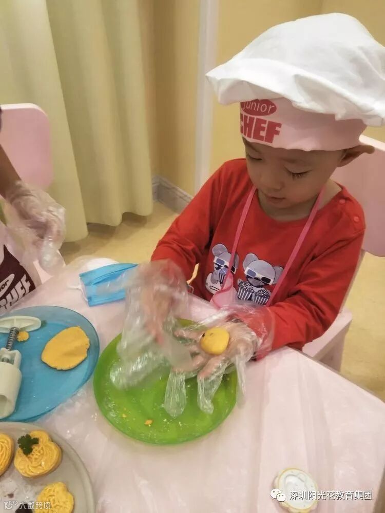 小宝贝们来到啦,我们把围裙、帽子,口罩,手套带上,一起跟着三位大厨师学做南瓜饼,心情好开心,好激动呀