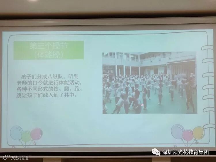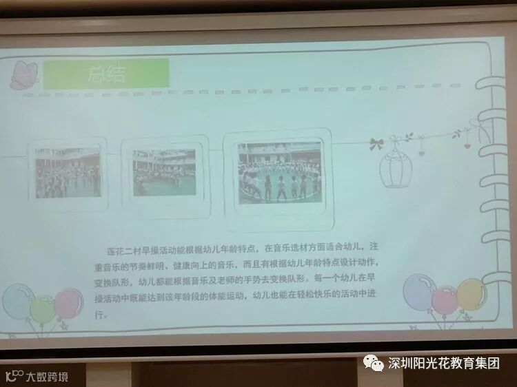 之后对莲花二村的学习分享进行了提问总结,在早操环节老师的动作要求要更进一步,将动作标志化,在户外活动前每次都要进行热身运动从头到脚。晨谈活动时要有序,以半圆形去开展活动,保证每个孩子都可以关注到。每个环节都有固定的常规音乐,有助于老师管好孩子常规。