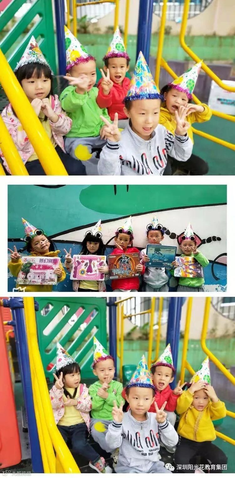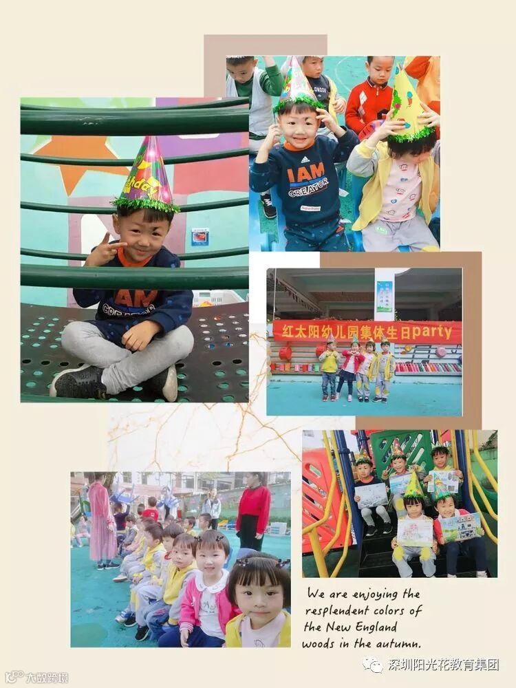 大合影,我们戴着老师送的生日帽和小礼物一起来一张美美的大合照。