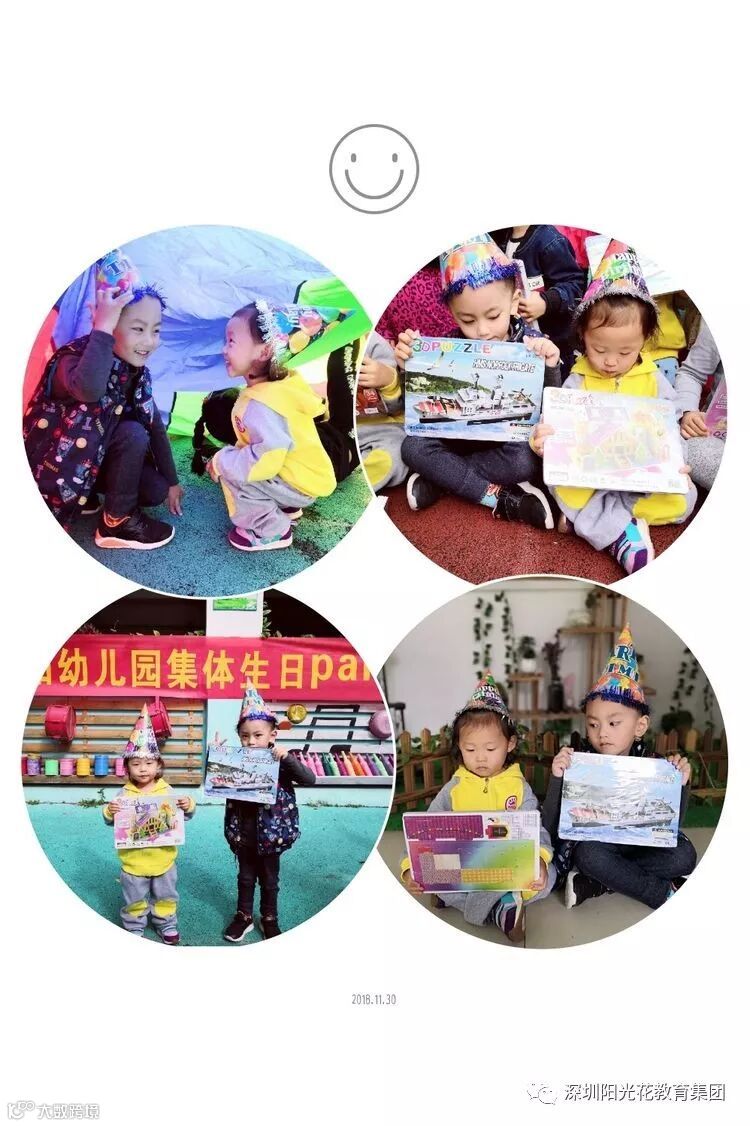 让孩子在集体中过生日,可以培养孩子的一种集体意识和分享意识,而且给孩子们营造了宽松,快乐的心理环境与物质环境,使他们充分感受到集体生活及成长的幸福与快乐。引导孩子积极主动的参加生日庆祝活动,培养孩子在活动中大胆表现自己。大胆与同伴交往的能力,增加自信心。 2018年11月30日我们在幼儿园举行了11月的集体生日会。