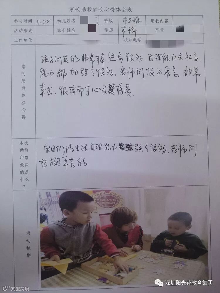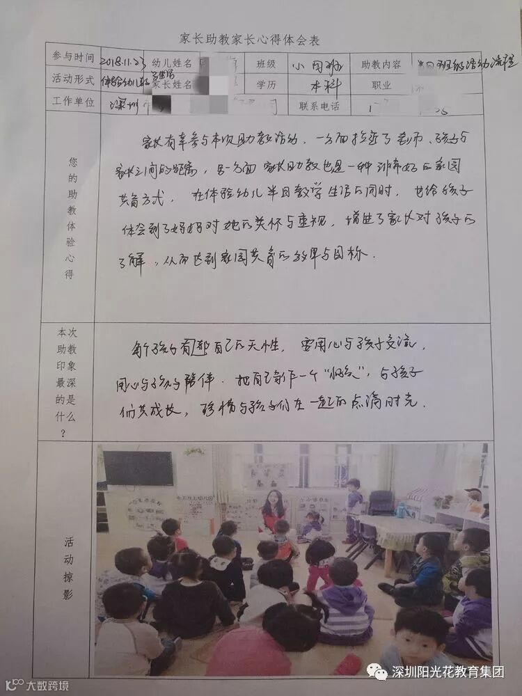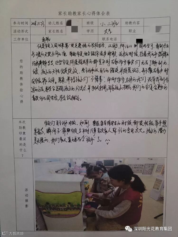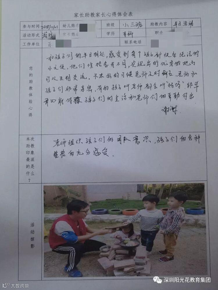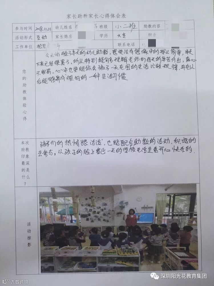 通过助教活动,帮助家长了解孩子的年龄特点,提升家长育儿的经验,拓宽孩子的知识面,初步感受不同的教育方式。