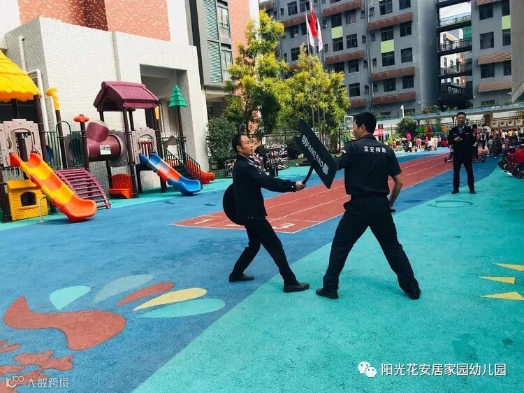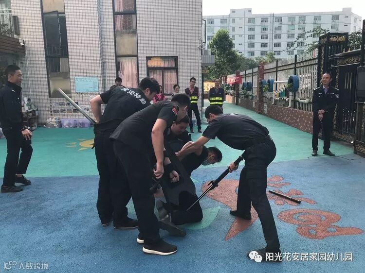 为提高师生安全意识,提高师生在遇到歹徒行凶等突发事件时的应变能力,提高教师和各部门间的协调能力以及幼儿园处置突发事件的能力,同时增强全园师生逃生意识,2018年11月9日,阳光花安居家园幼儿园特邀警区人员来园进行“反恐防暴模拟演练”活动,此次活动不仅针对幼儿园反恐应急小组进行培训和加强应急防范技能,还邀请了家长义警参与本次“反恐防暴模拟演练”,和幼儿园一起掌握应急防范技能。