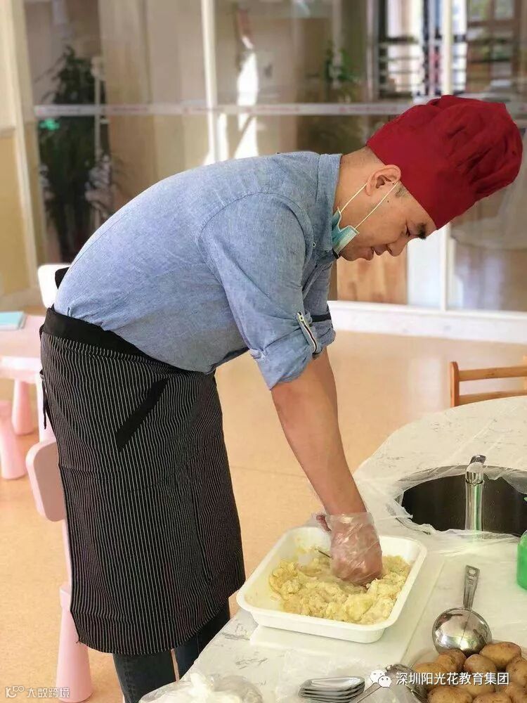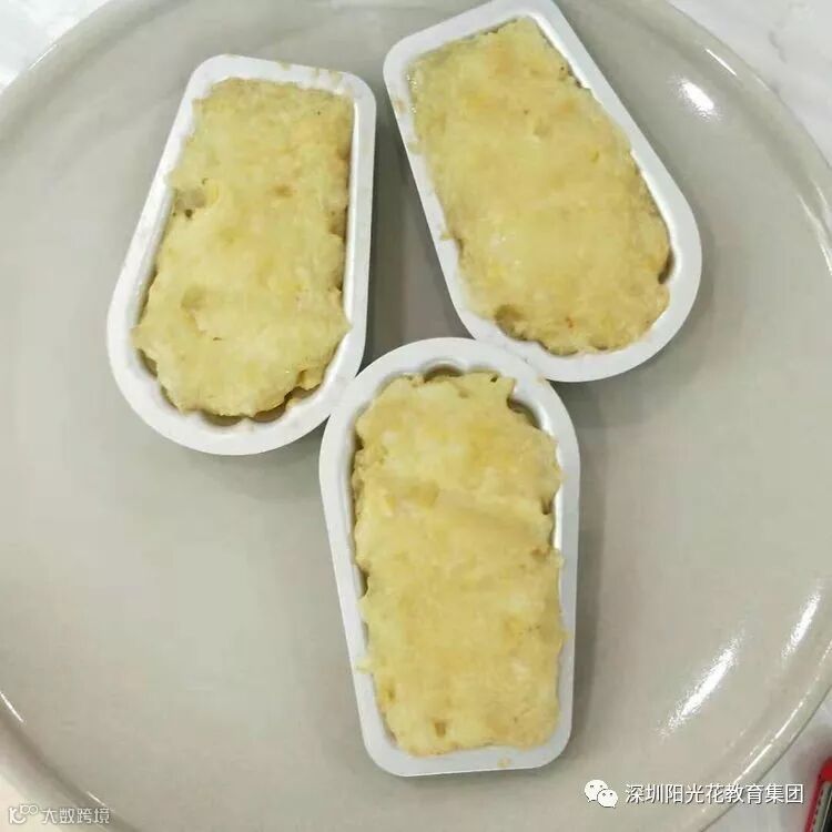 我们的助教叔叔介绍我们的调味料有盐和白沙糖,再将这些调料放入我们的土豆泥里搅拌均匀!