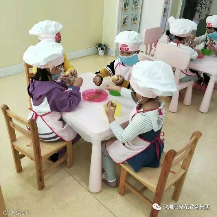 接下来我们的小厨师们就要将土豆泥按进事先准备好的模具,做成有形状的土豆饼!
