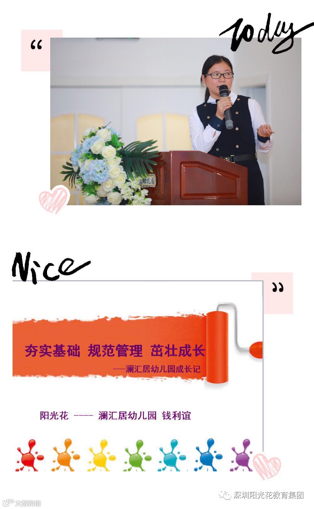 15所幼儿园园长简短的分享,代表了15所幼儿园的成长,15个不同的故事,见证了15所园的付出,见证了15个团队的美丽蜕变,我们因阳光花而欢聚于此,我们是最棒的阳光花人。