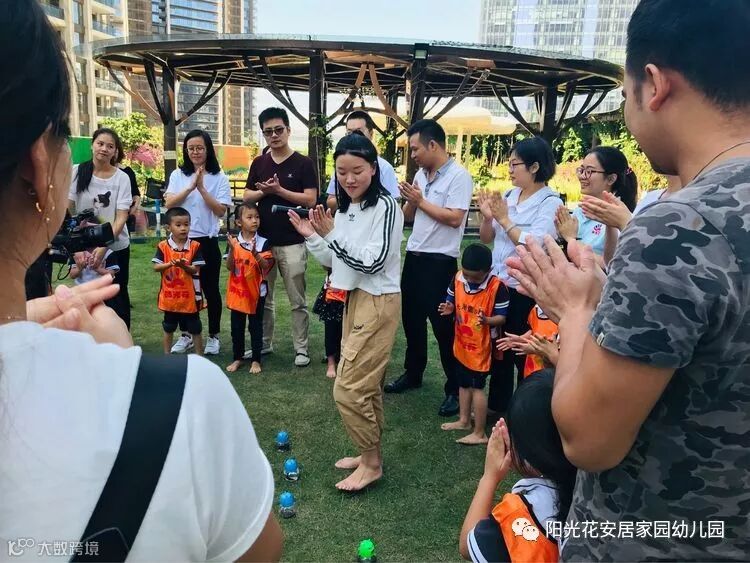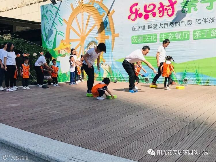 经过了一系列的操作体验活动,乐只村活力可爱的刘老师带领潮宝和潮爸潮妈们一起进入了激烈的游戏比赛环节《摸石过河》。由潮爸或潮妈踩着“石头”过河,潮宝负责搬运“石头”。