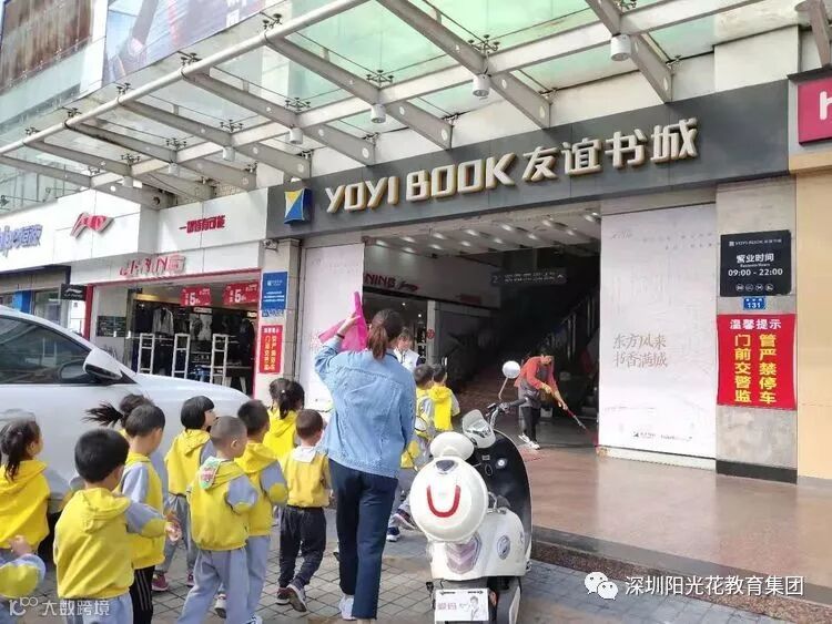小朋友在丘老师的带领下走进友谊书城。