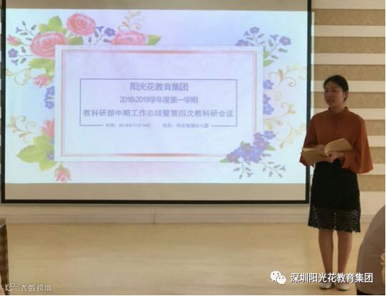 2018年11月14日,深圳阳光花教育集团教科研部叶华总监、王赟部长、李建惠园长、鞠艳园长和深圳总部30余位教学园长、主任在华业玫瑰幼儿园汇聚一堂,开展了阳光花教育集团2018-2019学年度第一学期第四次教科研会议。本次会议由集团教研部李建惠园长主持,会议分为以下五项: