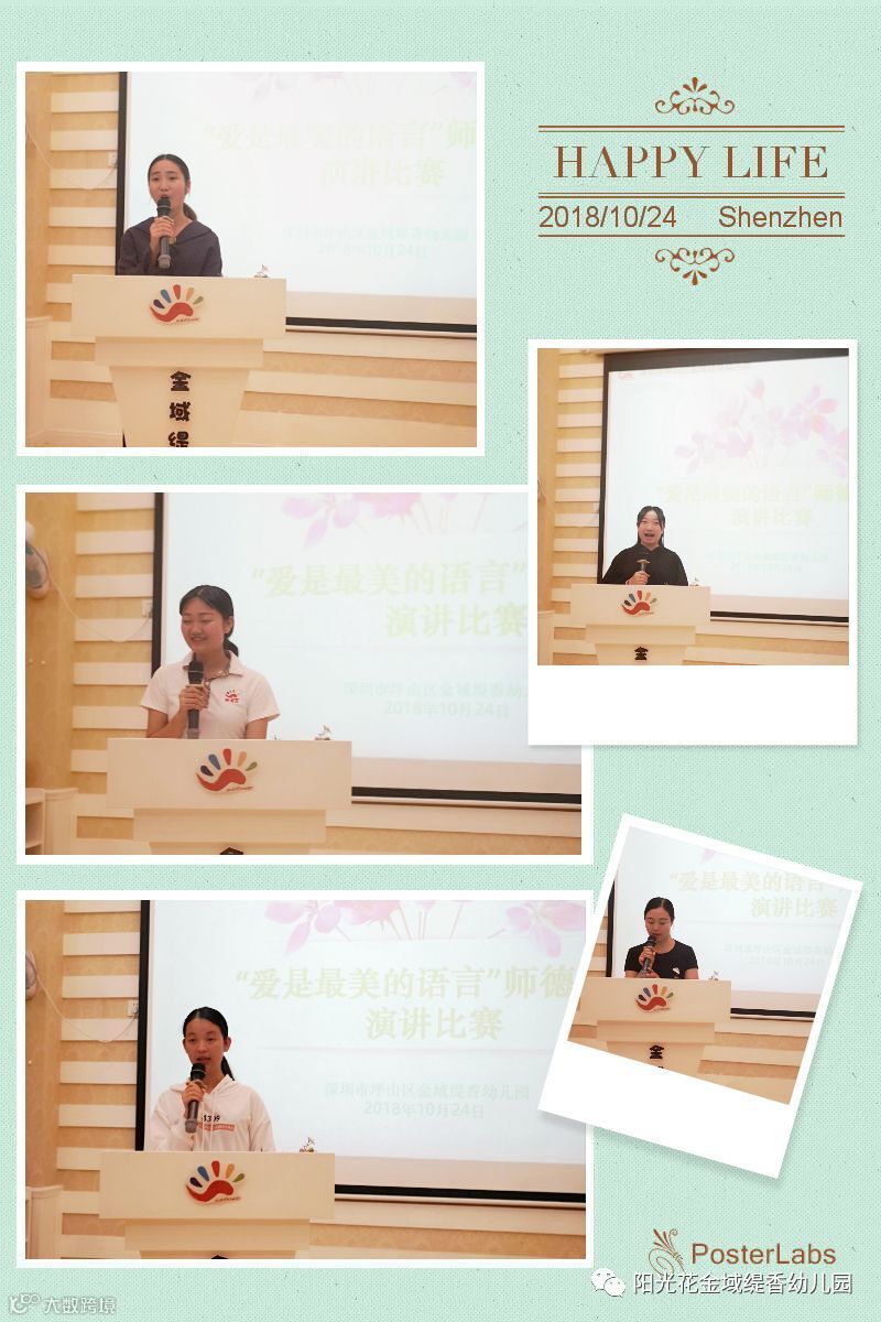 接着,进入教师演讲比赛环节。在老师们的言语中,充满着浓浓的爱。爱是一切的源泉,人世间唯有爱是越分越多,我愿意把我全部的爱都给我的孩子们,因为我爱我的孩子们!