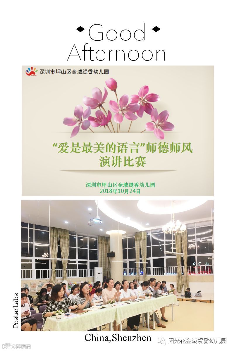 2018年10月24日晚上6:10分,在金域缇香幼儿园二楼音乐厅开展了“爱是最美的语言”教师师德师风演讲比赛。 本次比赛由孔月琴园长、陈颖园长和其它行政人员担任评委。