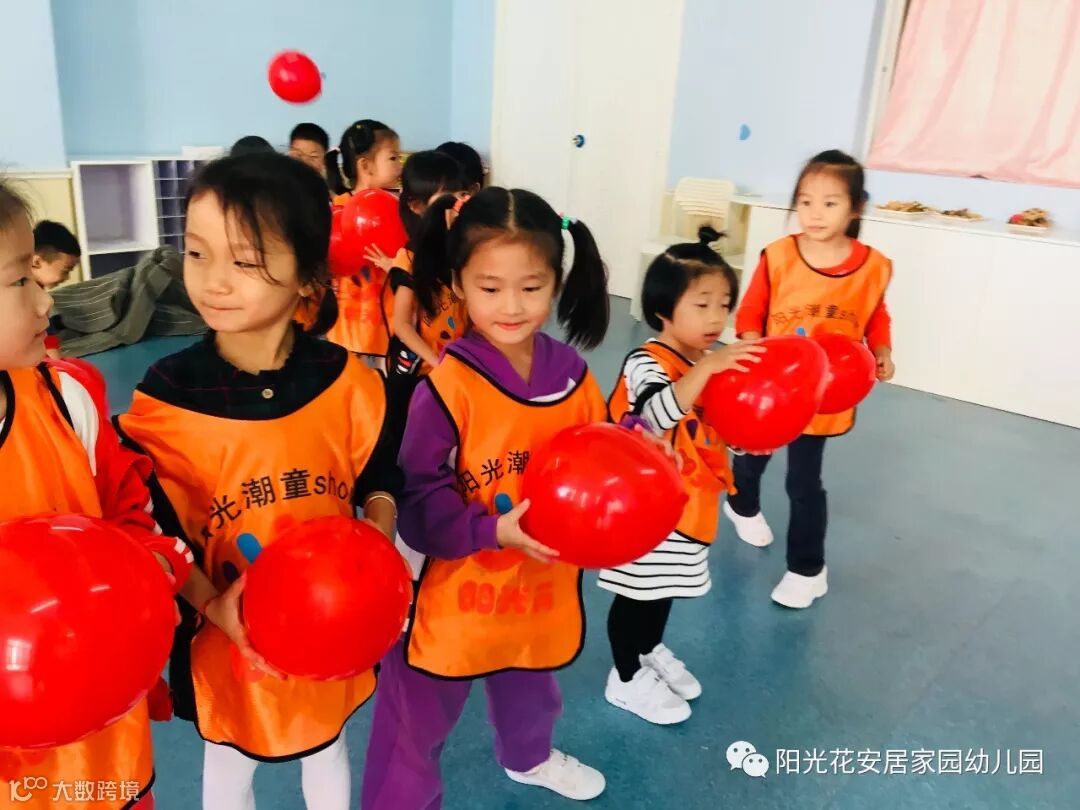 为了培养潮宝们的手脚协调能力以及反应能力,潮宝们利用“神奇的气球”进行了一次“球不落地”小组PK赛,潮宝们玩得兴奋不已,小班组的弟弟妹妹们也不甘示弱,到最后已经分不清是比赛还是抢球,只顾着不要让气球落地了;