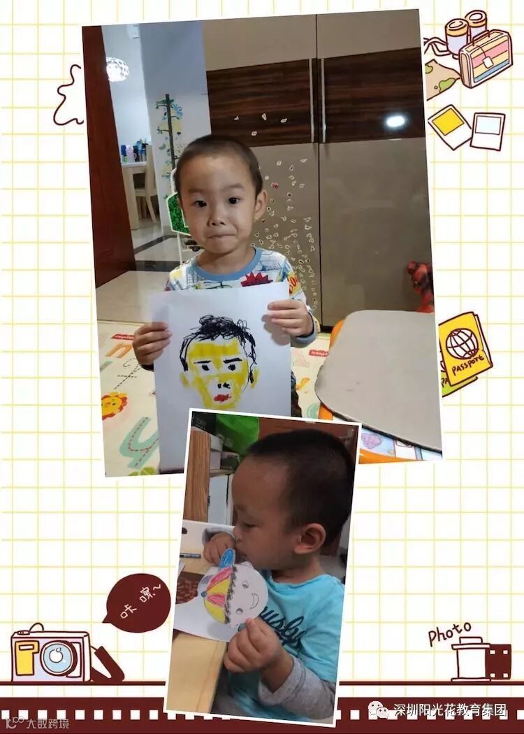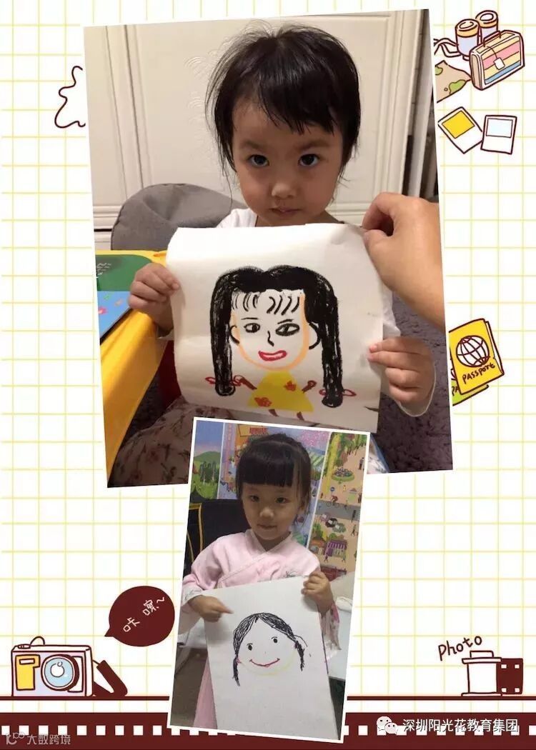 周末家长们与小朋友一起制作《我的自画像》每个小朋友都能把自己画出来、加深小朋友对五官的认知!