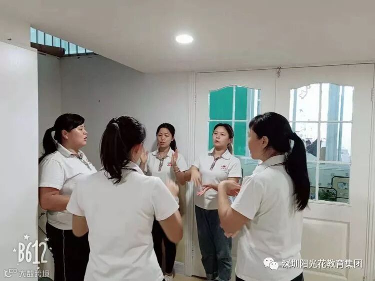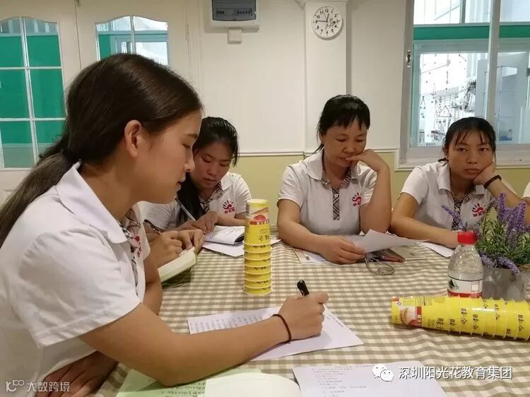 老师们正在探讨适合艺术口才的节拍,大家都开洞脑筋,想出了各种各样的节拍,一一实验,最终选出最适用孩子的。