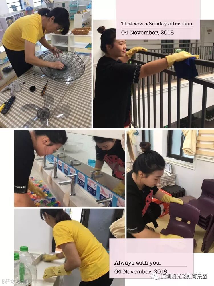 瞧👀勤劳的老师们利用周天的时间为幼儿星期一回园提前做好清洁。