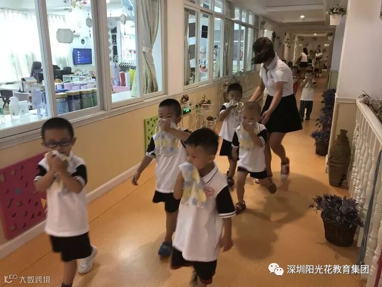 随着警报声的突然响起,各班教师迅速按照紧急预案的疏散线路带领幼儿拿起湿毛巾,捂住口鼻,弯腰小步快走,迅速且有序的下楼到操场安全地带集合。