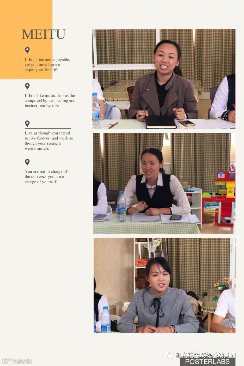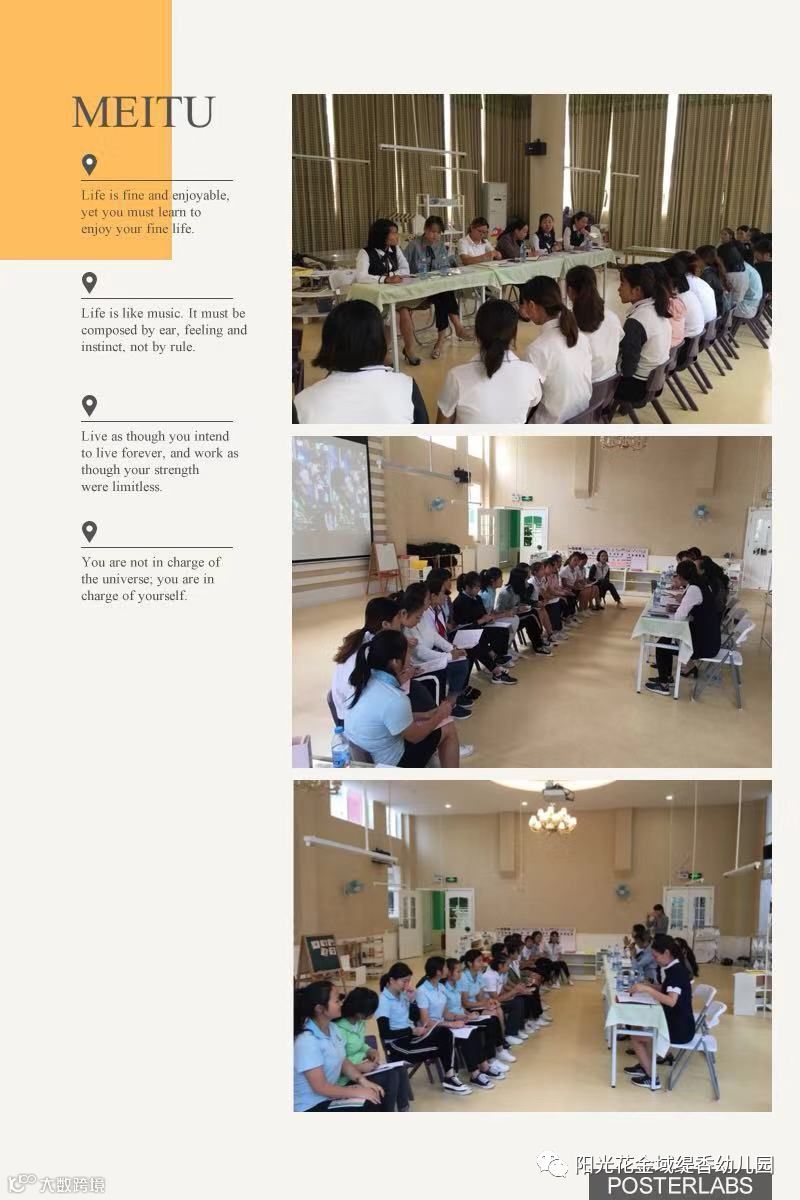 最后,贾媛园长为我们带来了精彩的艺术口才示范课,让大家受益良多,更打开了老师们的思维,让老师们对阳光儿童艺术口才有了更深入的了解。