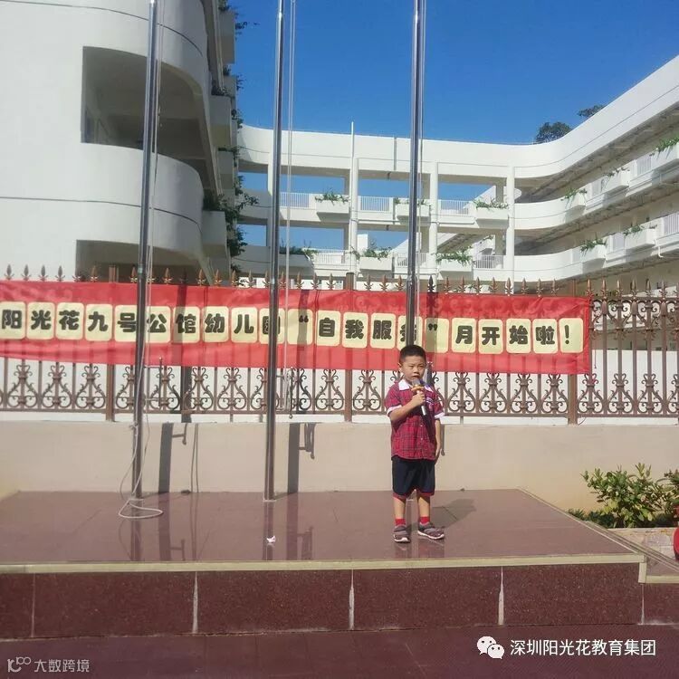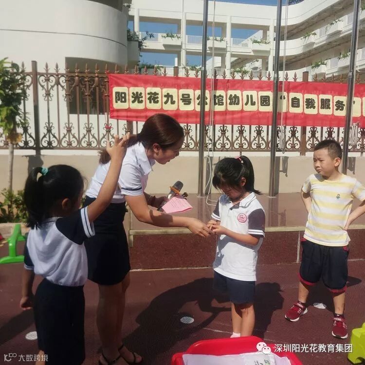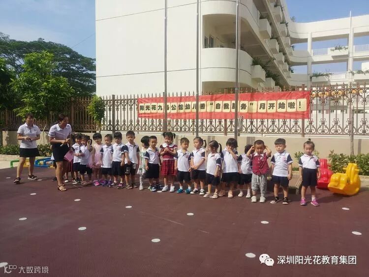 2018年9月14日上午,阳光花中海九号公馆幼儿园举行了自我服务月启动仪式。幼儿期是培养生活自理能力形成的关键期,通过对幼进行生活自理能力的培养,巩固幼儿自我服务意识,学会生活自理的方法,掌握生活自理的技能,促进幼儿良好生活卫生习惯的形成。