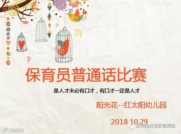 语言是人与人沟通的桥梁,华夏之语·心灵之声,我们国家是一个多民族,多方言的国家,普通话是我们国家统一的语言,每一个中国人都应该说好它。一口口漂亮的普通话是你步入工作岗位的敲门砖,一口流利的普通话也能为你的个人魅力加分。为了加强对保育教师的各项技能培训,同时也为了给保育教师创造锻炼的机会,进一步规范保育工作,红太阳幼儿园2010年10月29号晚上在张医生的组织下特举行本次保育教师普通话比赛。